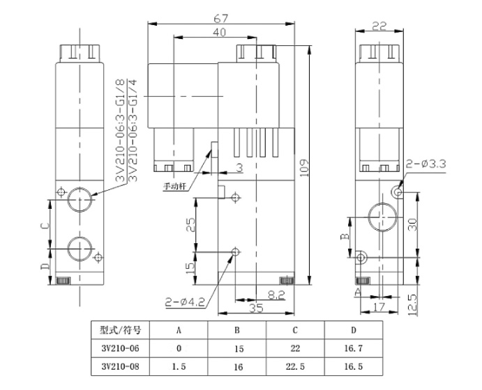 | 位置數 | 二位三通 |