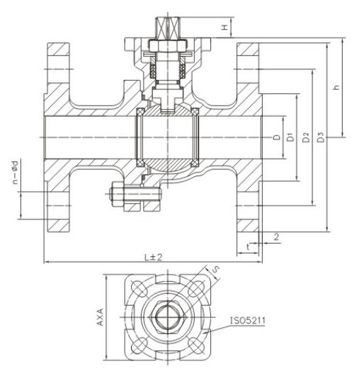 | 型號 | 接口螺紋 | DN | D | L | H | A | D1 | D2 | D3 | ISO5211 | t | n-Φd | S | H | 執(zhí)行器 | |