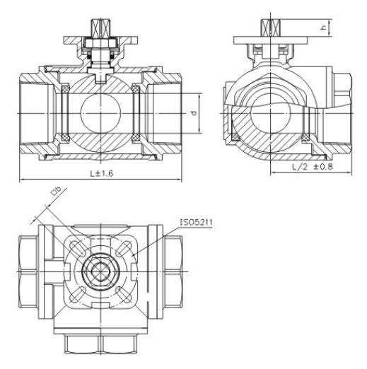 | 型號(hào) | 接口螺紋 | DN | d | L | h | b | ISO5211 | 執(zhí)行器 | |