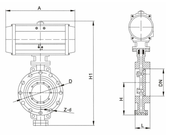 | 型 號 | 公稱通經(jīng) (英寸) | L | D | D1 | H | H1 | H2 | A | Z-d | 執(zhí)行器 | ||