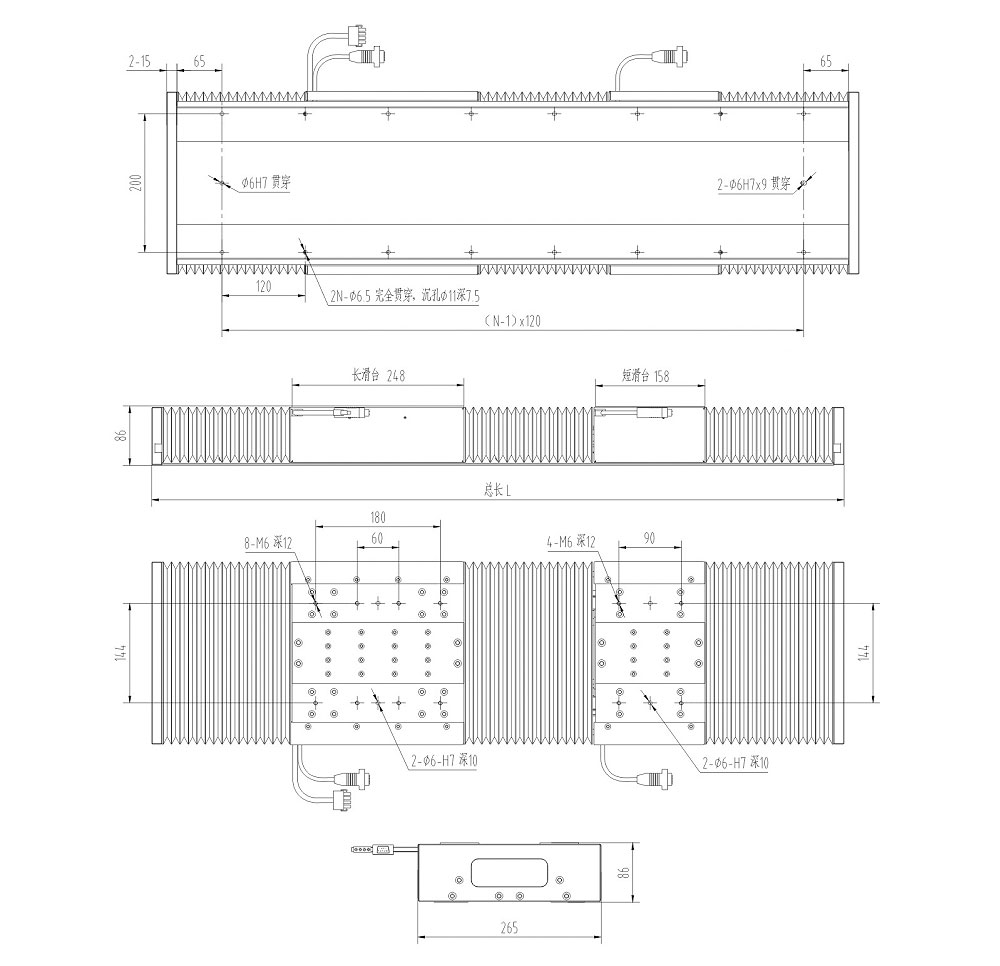 ○ 標準產品可達4M,可非標定制長度行程單軸多動子運動
